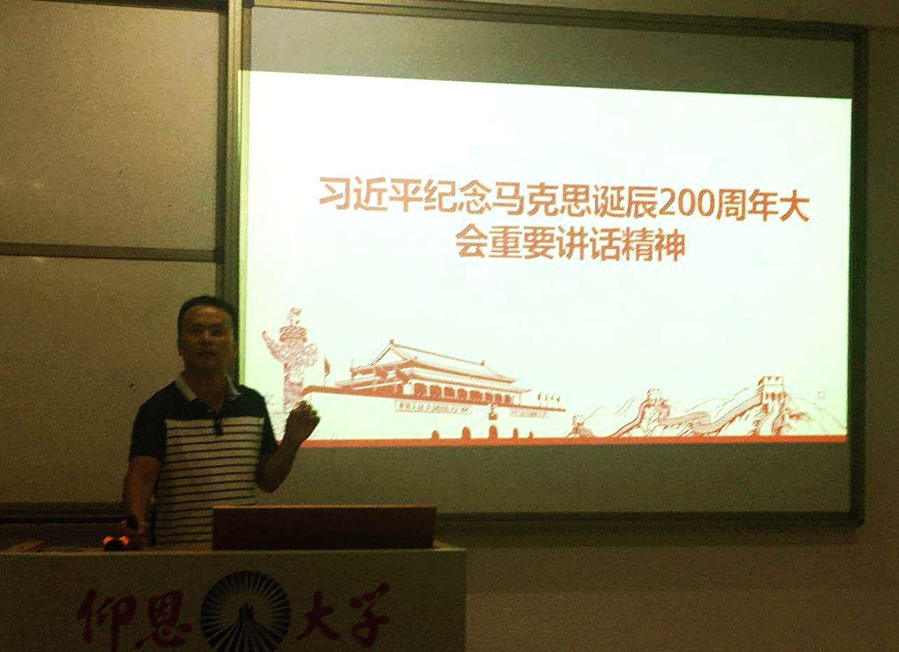 唐锦锋的报告主题是《习近平纪念马克思诞辰200周年大会重要讲话精神》,他分别从马克思的一生、马克思主义概述、马克思主义在世界的传播、马克思主义在中国和学习马克思五个方面论证了马克思是科学的理论、人民的理论、实践的理论和不断发展的开放理论。唐锦锋以其扎实的理论功底、渊博的丰富知识和雄辩的出色口才为思政部全体教师带来一场理论学习的视听盛宴,开启了思政部党员教师讲党课系列的良好先河,为部门的教学工作和理论研究注入了强大动力,也使在座教师通过学习更加坚定了马克思主义的精神信仰和在工作中坚持马克思主义的坚定信心。