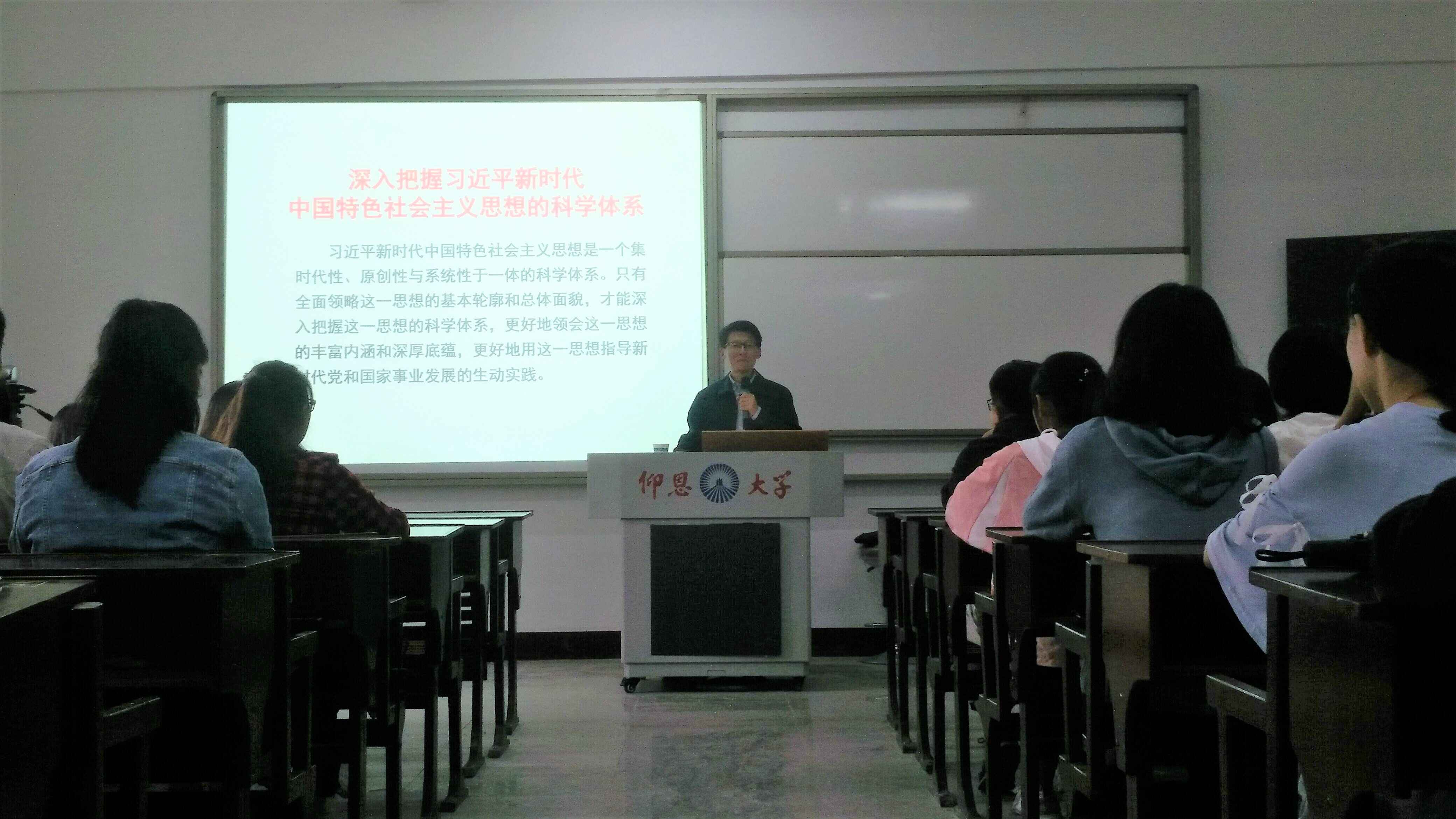 报告结束后,思政部副主任李克钦表示,庄书记的报告从宏观上解读了习近平新时代中国特色社会主义思想的理论框架,既有理论高度,又系统而全面,希望同学们以此为契机,积极行动起来,在我校同学中间掀起学习习近平新时代中国特色社会主义思想的高潮。