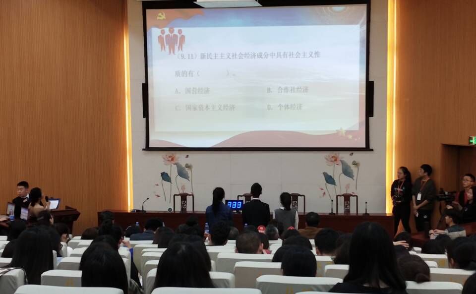 此次竞赛共有来自全校各学院的九支代表队参加,比赛第一轮分为必答、抢答和竞答三种形式,竞赛题型囊括了填空、单选、多选、判断等,题目主要围绕习近平新时代中国特色社会主义思想和《马克思主义基本原理概论》、《毛泽东思想和中国特色社会主义理论体系概论》、《中国近现代史纲要》、《思想道德修养与法律基础》、《形势与政策》等课程内容展开。经过第一轮的激烈角逐,最后经济学院一队、工程学院代表队和人文学院代表队等三支队伍脱颖而出,参与第二轮竞赛。第二轮的竞争更加激烈,由分数最高的一队守擂、另两队攻擂。最后,工程学院代表队完胜,成为此次竞赛的冠军。