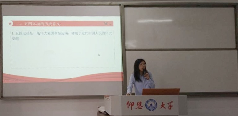 5月22日下午,思政部成功举办了本学期第一次学术沙龙活动。由思政部教师刘菲为思政部教职工做了题为《五四运动与五四精神——学习习近平总书记在纪念五四运动100周年大会上的讲话》的汇报。