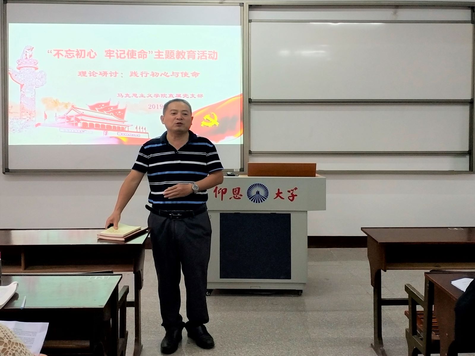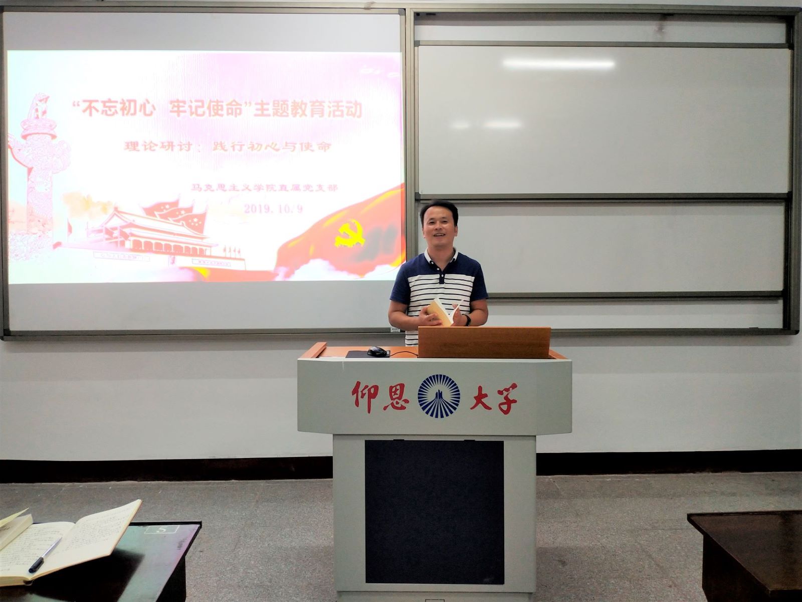 10月9日下午,马克思主学院直属党支部在普照楼311室召开“不忘初心、牢记使命”专题理论研讨活动。活动由马克思主学院直属党支部书记、常务副院长李克钦主持,校党委纪检专员高延松、金年会官网全体党员等参加了此次研讨活动。