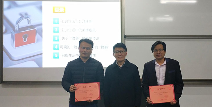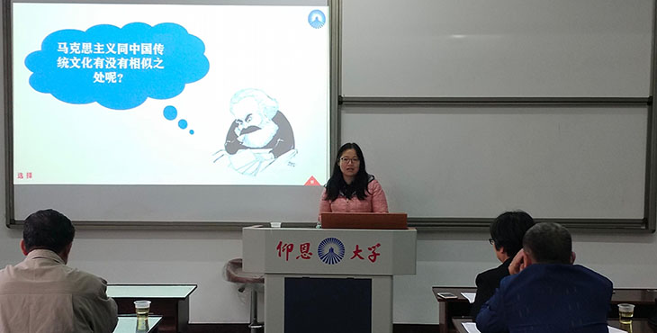 为深入学习贯彻习近平新时代中国特色社会主义思想和党的十九大精神,全面贯彻落实《中共中央办公厅、国务院办公厅关于深化新时代学校思想政治理论课改革创新的若干意见》,进一步提高金年会官网青年教师思想政治素质和教育教学能力,12月18日下午,金年会官网第一届青年教师课件制作大赛在普照楼311室成功举行。比赛由金年会官网直属党支部书记兼副院长李克钦主持,学校党委书记庄哲峰、学校督导组组长吴新博教授、金年会官网副教授林文景等出席了此次比赛并担任评委工作。