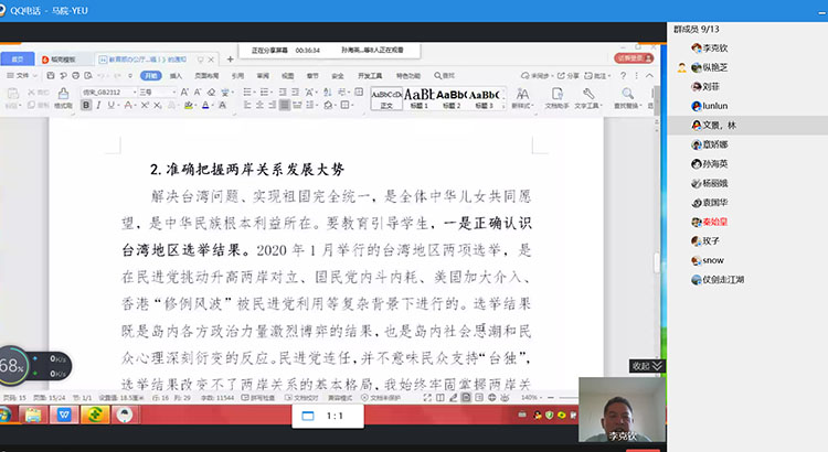 与会其他老师也都踊发言,会议气氛比较热烈,此次线上教学研讨会取得了圆满成功。 (文/图 马院)