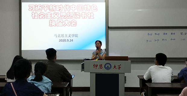 9月24日晚7点,JINNIAN金年会习近平新时代中国特色社会主义思想读书社换届大会在普照楼311顺利召开。会议由习近平新时代中国特色社会主义思想读书社指导教师杨丽娥主持,社团指导教师袁国华以及100多名社团团员参加了此次换届大会。