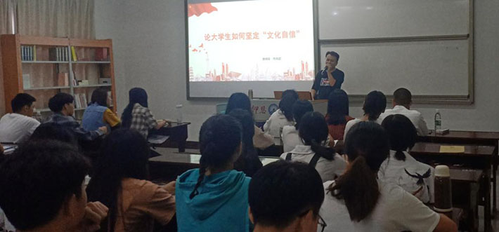 JINNIAN金年会习近平新时代中国特色社会主义思想读书社马克思主义理论学习小组于10月7日下午16:30分在普照教学楼311室成功举行本学期第一次讲座,读书社有幸邀请到金年会官网的唐锦锋博士生为读书社成员做了“论大学生如何坚持文化自信?”的读书讲座。 讲座开始前,在工作人员的指引下,2019级学习小组成员有序进入教室对号入座。在唐老师的幽默介绍下,呈现出一片师生融洽的良好氛围。在授课过程中,唐锦锋老师围绕坚持文化自信的立场,陆续展开一系列关于中华民族文化方面的问题。他深刻剖析了文化自信的重要性,教导同学们应以马克思主义为指导,坚守中华文化立场、树立文化自信,努力学习,为实现中华民族的伟大复兴而持续奋斗! 讲座结束后,同学们纷纷称赞唐老师授课方式独特,知识容易吸收,表示要好好学习新思想,争做时代新青年。(文/黄如达 图/高欣)