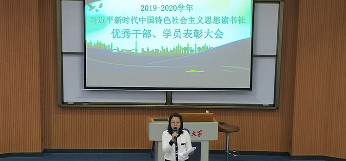 10月21日下午,JINNIAN金年会习近平新时代中国特色社会主义思想读书社在新区和昌楼博雅讲堂召开表彰大会,对2019-2020学年的“优秀学员”和“优秀学生干部”予以表彰。学校校党委副书记程如平,组织部部长王洋,宣传部副部长陈章祧,金年会官网党支部书记、常务副院长李克钦出席大会。