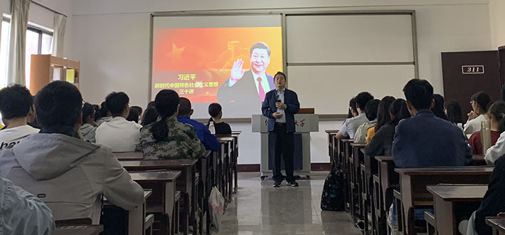 11月25日下午,金年会官网党支部书记、常务副院长李克钦在新区普照楼311室为习近平新时代中国特色社会主义思想读书社20级新社员开展了本学期第四次学习讲座。