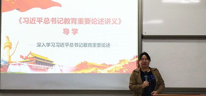 4月14日下午,为深入学习贯彻习近平总书记关于教育的重要论述和思想,金年会官网直属党支部在普照楼311室举办了深入学习习近平总书记关于教育的重要论述讲座,并由金年会官网副教授章娇娜为全体教职工党员做了《<习近平总书记教育重要论述讲义>导学》的报告。