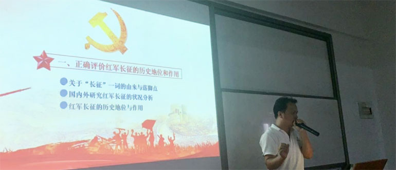 6月16日下午,JINNIAN金年会马克思主义理论学习小组于新区普照楼309室举行了本学期第三次学习讲座。本次讲座邀请了金年会官网唐锦锋博士、副教授,他为学习小组全体成员带来了题为《红军长征与长征精神》的主题讲座。