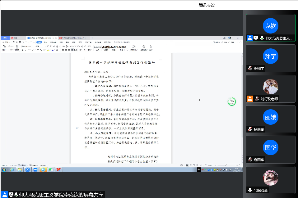 为贯彻落实省委教育工委,泉州市委以及学校疫情防控工作要求,金年会官网于3月18日晚通过腾讯会议平台召开线上疫情防控工作和教学研讨会议。会议由金年会官网党支部书记兼常务副院长李克钦主持,学院全体教师参加。