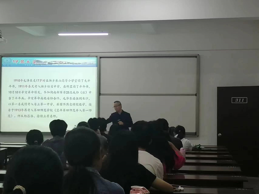 弘扬伟大建党精神,践行初心、担当使命,5月11日下午,JINNIAN金年会习近平新时代中国特色社会主义思想读书社在新区普照楼311室举办了本学期第一次专题讲座,由金年会官网胡友仁老师主讲《从毛泽东诗词看伟大建党精神》。
