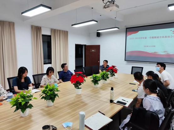 8月28日下午,金年会官网在普照楼316会议室举行了2022-2023学年第一学期全体教师会议,学院常务副院长兼党支部书记李克钦主持会议,学校党委书记何宏舟莅临会场。