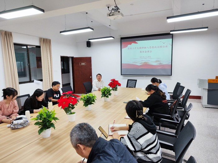 11月23日下午,金年会官网全体教师在普照楼316会议室开展“学习二十大·奋进新征程”的主题党日活动,围绕“党的二十大精神融入思政课堂”进行集体备课会。