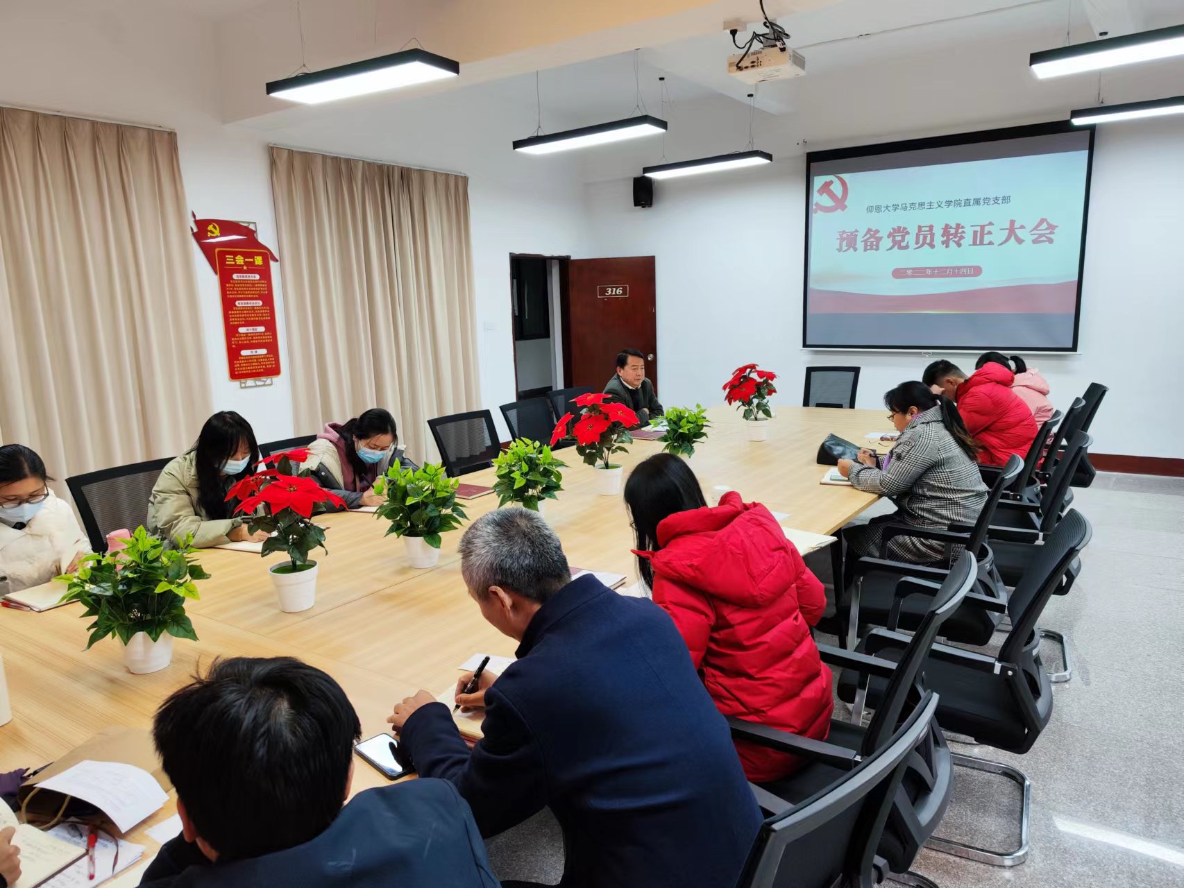 12月14日下午,金年会官网直属党支部在普照楼316党员活动室召开了预备党员转正大会。在疫情防控条件下,支部全体在校党员、预备党员参与了此次会议。会议由支部组织委员张维伦主持。