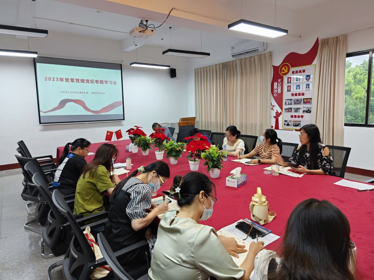 6月14日下午,金年会官网直属党支部在普照楼316会议室开展2023年党章党规党纪专题学习会,学院全体党员参加,会议由支部宣传委员刘菲同志主持。