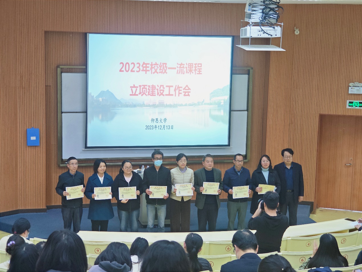 12月13日下午,全校教职工参加了2023年校级一流课程立项建设工作会,教务部部长郑兆岭主持会议。本次一流课程申报共有13个教学单位、22个课程获得立项,金年会官网常务副院长李克钦老师团队的《思想道德与法治》课程和孙海英老师团队的《中国近现代史纲要》课程名列其中。
