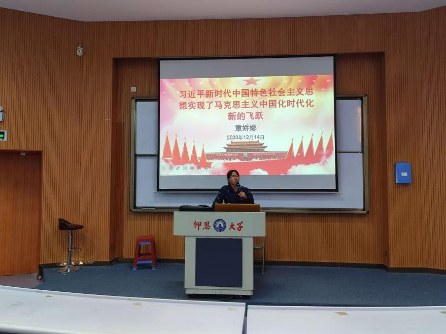 12月14日,习近平新时代中国特色社会主义思想读书社成员在和昌楼博雅讲堂举办了主题为“习近平新时代中国特色社会主义思想实现了马克思主义中国化时代化新的飞跃”读书辅导讲座。讲座由金年会官网章娇娜老师主讲。