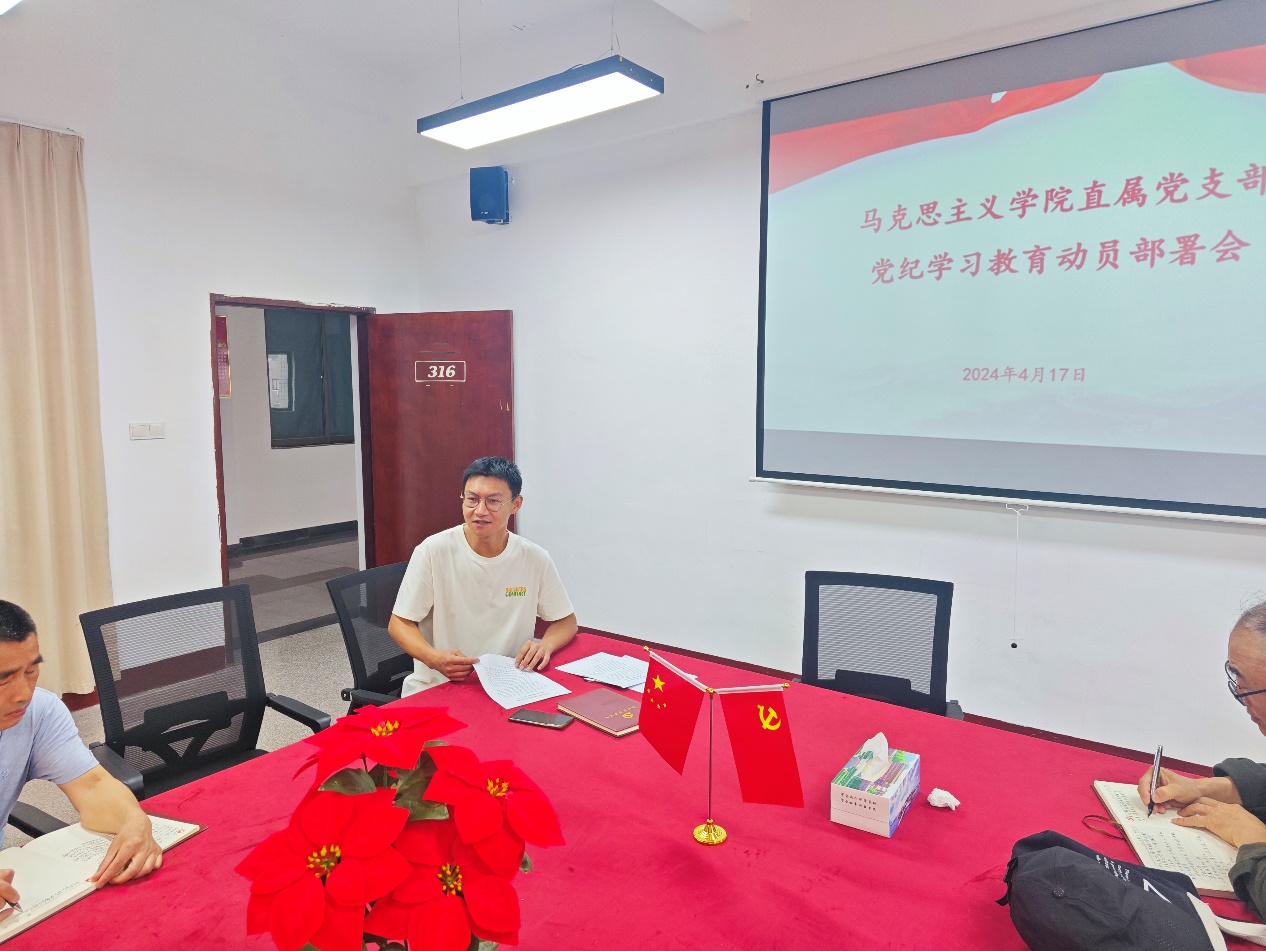 4月17日下午,金年会官网直属党支部在普照楼316会议室召开党纪学习教育动员部署会,会议由组织委员张维伦同志主持。