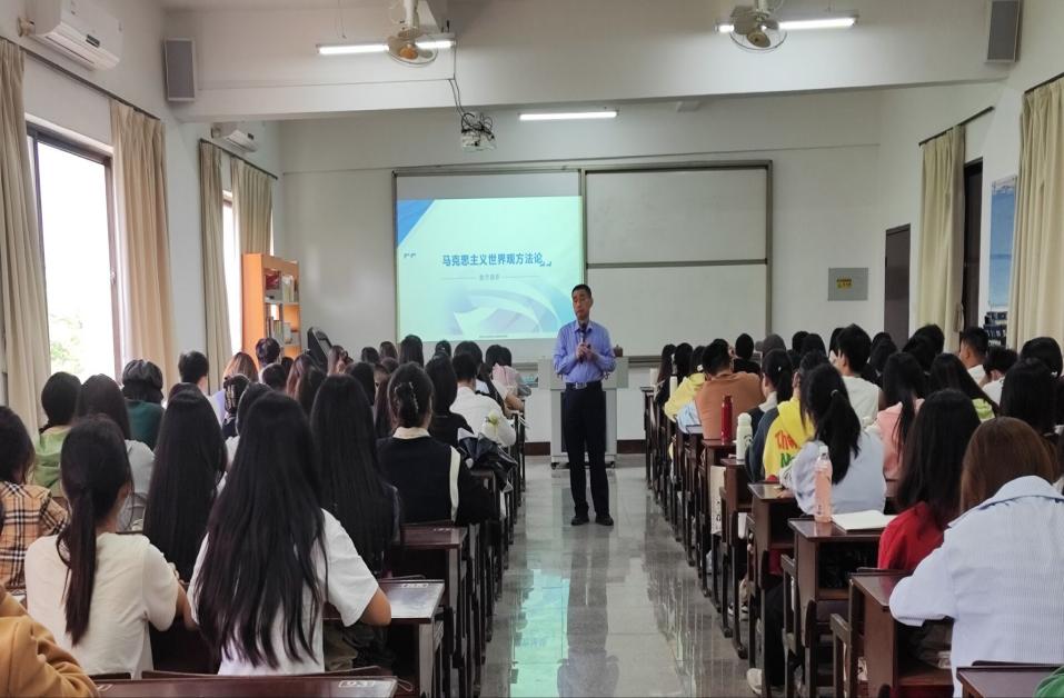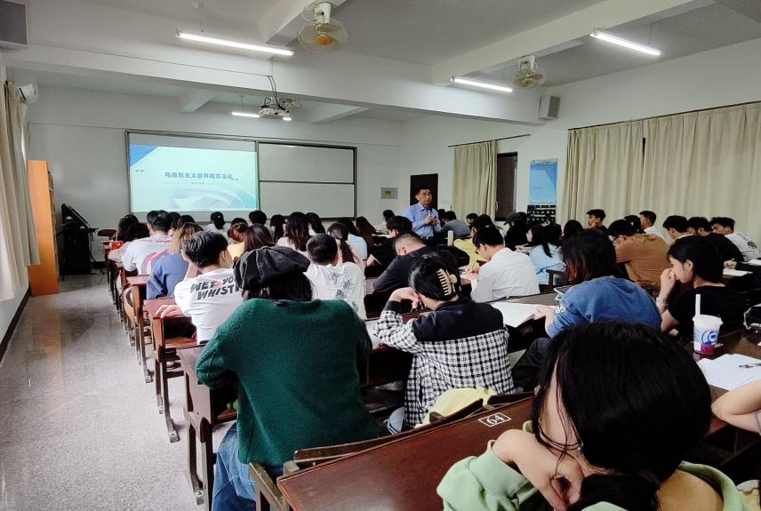 在教学过程中,宋教授不断地提出问题,引导同学们互动交流,解疑释惑。讲解过程中,宋教授单独强调了共产主义这个理论,他告诉同学们:“共产主义是一个理论体系,是人类的理想,更是一种境界。”同时,宋教授还提到中国共产党的世界观就是马克思主义下的辩证唯物主义与历史唯物主义,既增强同学们对马克思主义的了解,又拓宽了同学们的知识面。