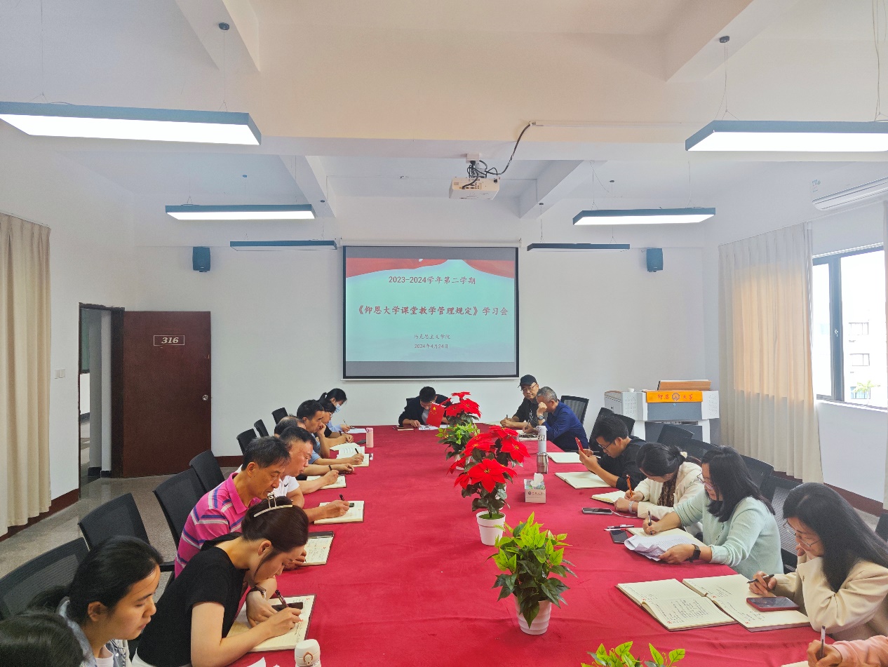 会议主持人张维伦带领全体教师集体学习了《JINNIAN金年会课堂教学管理规定》。文件从教师职能、教学规范、考勤制度、教学进度、教学质量与监督等方面阐述了课堂教学的要求与注意事项。随后大家又学习了常务副院长李克钦根据学校规定所制定的学院执行方案,明确了相应的职责。