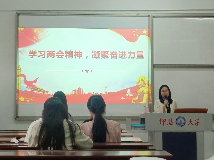 学习会上,蔡惠丽老师首先带领同学们回顾了我国2024年经济社会发展中的科技创新、民生保障、生态环境改善和乡村振兴等多个领域的显著成就。紧接着,蔡惠丽老师介绍了政府工作报告中关于2025年经济社会发展总体要求和主要预期目标以及2025年政府工作任务,重点讲解了“今年GDP预期目标为何定在5%左右”“CPI目标涨幅目标为何定在2%左右”“赤字率提高至4%意味着什么”等内容。最后,蔡惠丽老师对读书社成员们提出希望:要积极关注时政热点,与国家同心,与时代同行。鼓励同学们精益求精,不断提升综合素养与专业能力,打造核心竞争力,成长为“有理论深度、有实践温度、有社会责任感”的新时代青年,为国家的发展贡献青春力量。