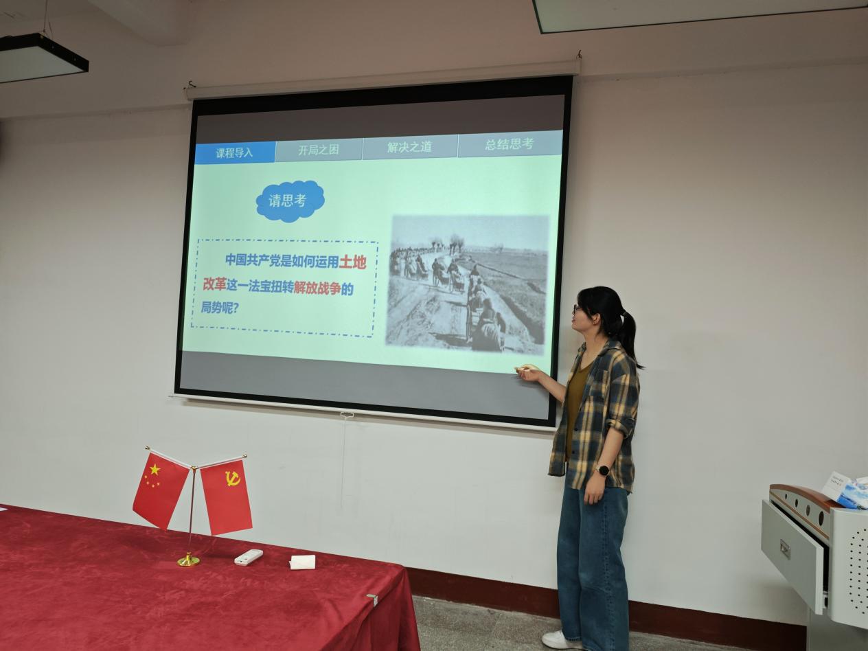 参赛教师的讲课内容丰富,针对性强。例如,陈云老师重点分析了解决好土地问题成为解放战争取得胜利的重要法宝,通过国共两党的现实状况切入,引出中国共产党的破局之道。施茜老师以才溪乡为例介绍来自“苏区模范乡”的民主建政经验。罗淑雯老师以问题链的形式详解改革的性质、目的与内容。闫露露老师从实践观和辩证法角度对意识能动作用的发挥进行分析。陈迪雅老师就初心、民心从经济、政治和军事三个方面谈中国共产党为什么能赢得解放战争的胜利。
