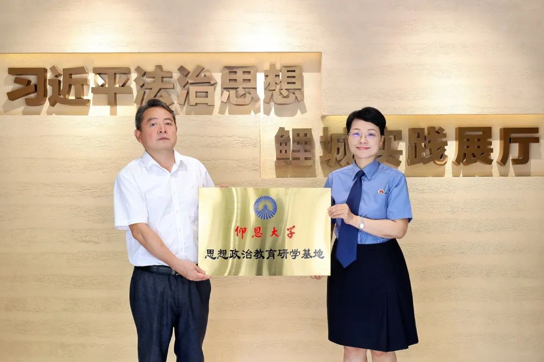 鲤城区人民检察院党组书记、检察长苏紫燕与JINNIAN金年会金年会官网常务副院长李克钦为“JINNIAN金年会思想政治教育研学基地”揭牌合影。