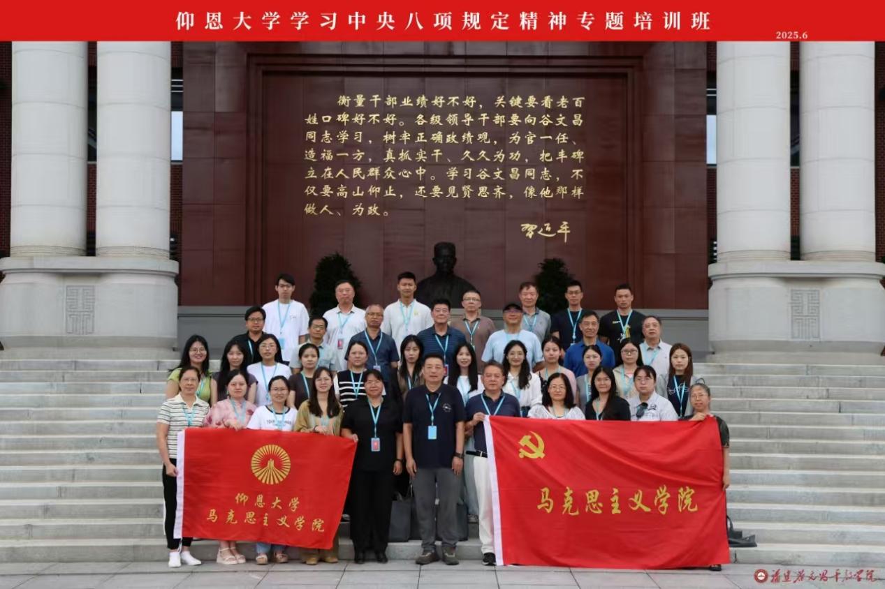 为深入贯彻落实学习中央八项规定精神,感悟思想伟力,凝聚奋进力量,我校金年会官网于7月5日—7日,在谷文昌干部学院组织专题培训班。本次培训共3天,以专题讲座、现场教学、仪式教学等多种形式展开。